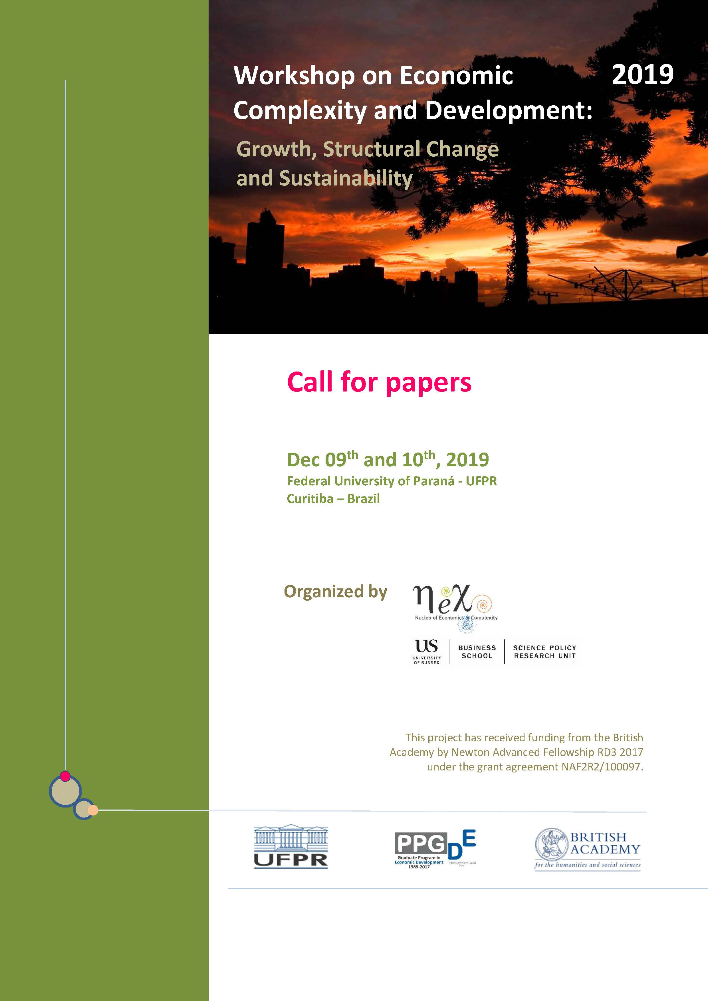 The NeX-Nucleo of Economics and Complexity (PPGDE-UFPR) and SPRU-Science Policy Research Unit (Sussex University) in cooperation with INET-Young Schoolar Initiave (YSI), are organizing the Workshop on Economic Complexity and Development: Growth, Structural Change and Sustainability.